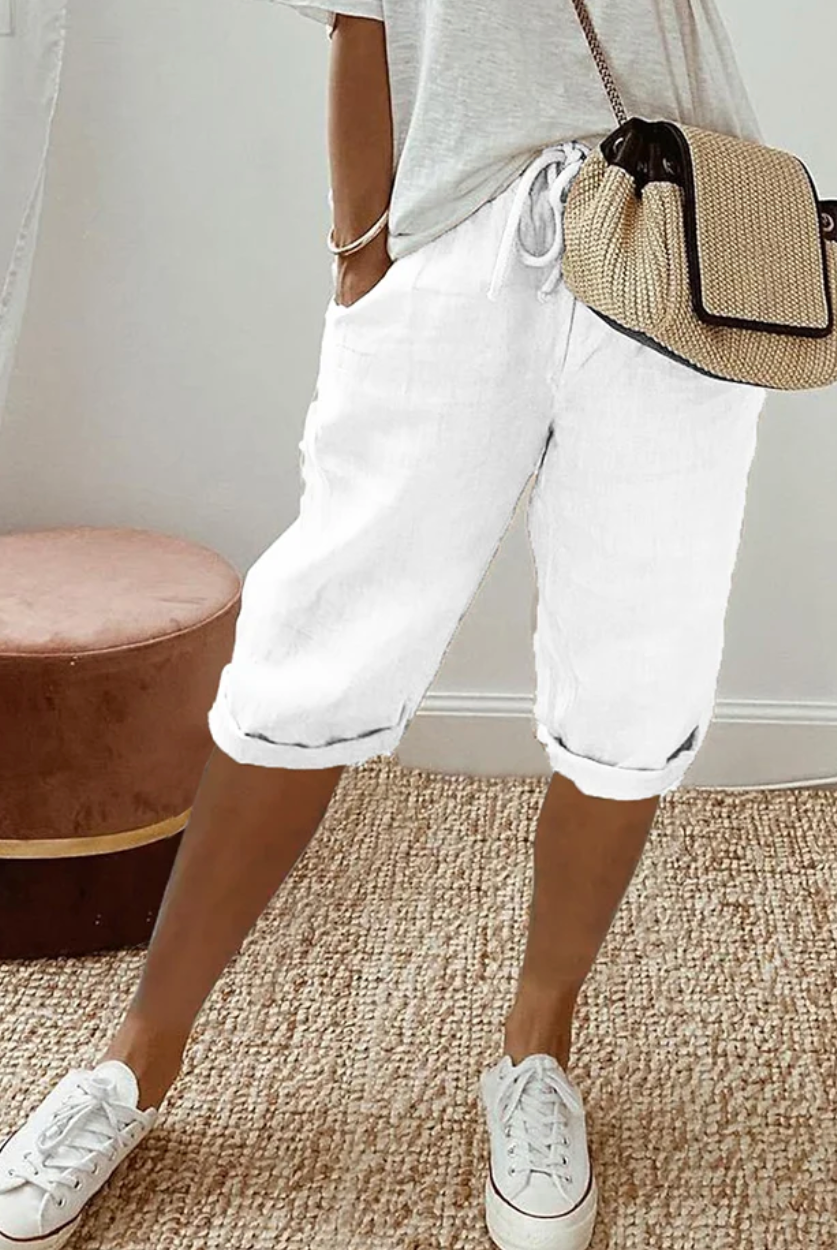 MIRANDA | KNEE-LENGTH LINEN SHORTS