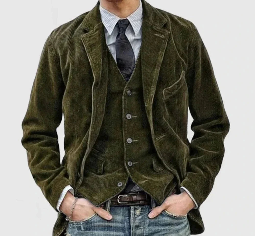 Experience the ease of effortlessly crossing style boundaries and making a statement with every outfit. Are you tired of searching for clothes that combine timeless elegance with modern flair? Look no further! Immerse yourself in simple sophistication with our Florian corduroy blazer and vest set. Immerse yourself in a classic aesthetic that effortlessly blends vintage charm with contemporary style. Get ready to turn heads and elevate your wardrobe with Florian's impeccable craftsmanship and timeless design.