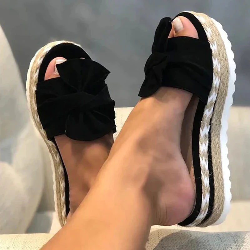 Introducing our Scarlett Bowknot Sandals! Perfect for summer adventures, these sandals bring effortless style to your sunny days. Featuring chic bowknot detailing, they add a touch of sophistication to your beachside strolls or rooftop soirées. With a comfortable medium wedge heel and slip-on design, they ensure day-long comfort for all your summertime escapades. From picnics in the park to sunset cocktails, these versatile sandals effortlessly elevate your summer wardrobe.